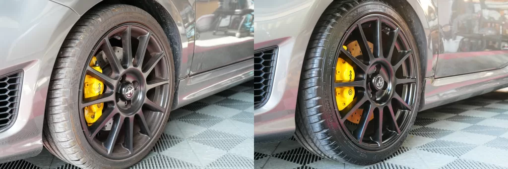 ブレーキダストや固着汚れも丁寧に除去し、足元からリフレッシュ。