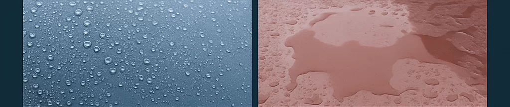 水弾き◎ 強い撥水・疎水△ 水が張り付きやすい