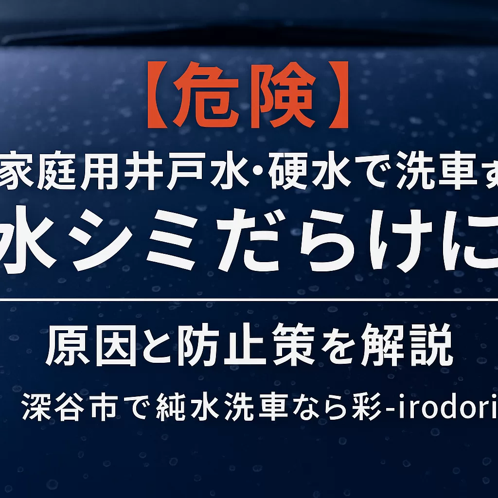 「水道代を節約できるから」「自宅に井戸水があるから」と、家庭用の井戸水や地域の硬水で洗車していませんか?実はこれ、塗装やガラスに頑固な水シミ(イオンデポジット・ウォータースポット)を残す大きな原因になります。本記事では、なぜシミができるのか、その悪影響、そして簡単にできる防止策について解説します。