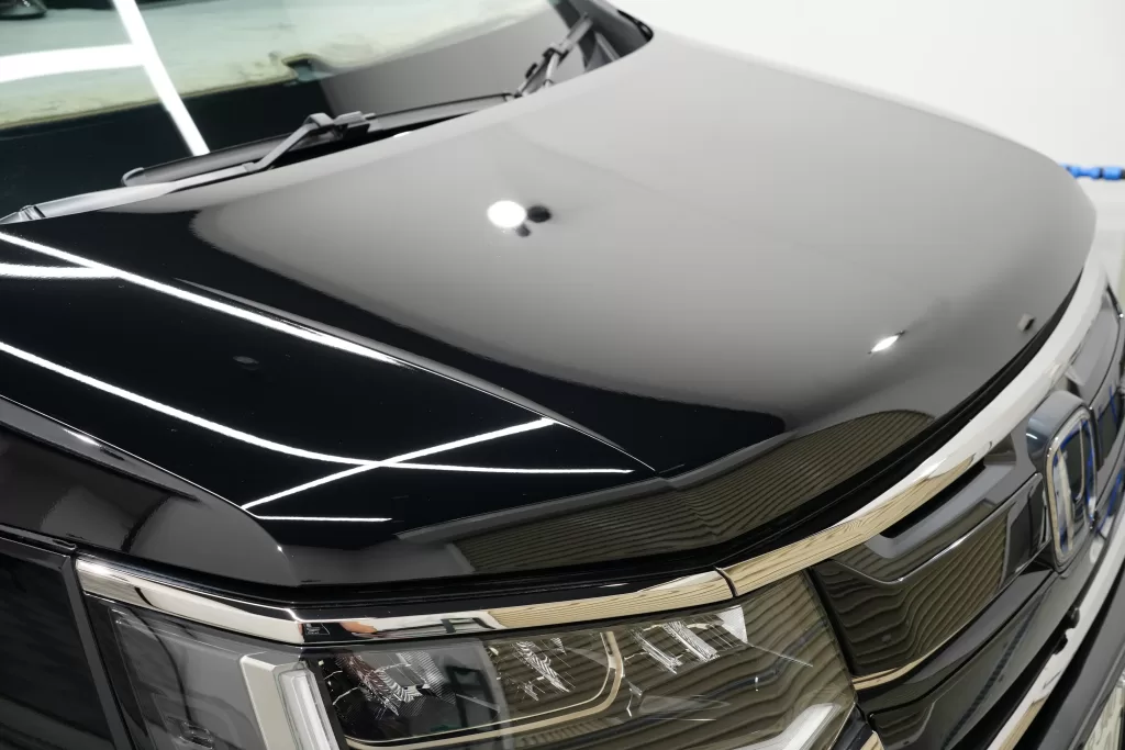 オーナー様と相談のうえ、ガラスの付着物除去については別日に対応することとなり、ご不便をおかけしてしまいましたが、ボディ面は可能な限り付着物除去し、除去作業時に生じた傷を丁寧に研磨で取り除き、さらに2種類のコーティングを施工することで、仕上がりに万全を期しました。