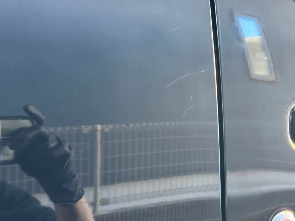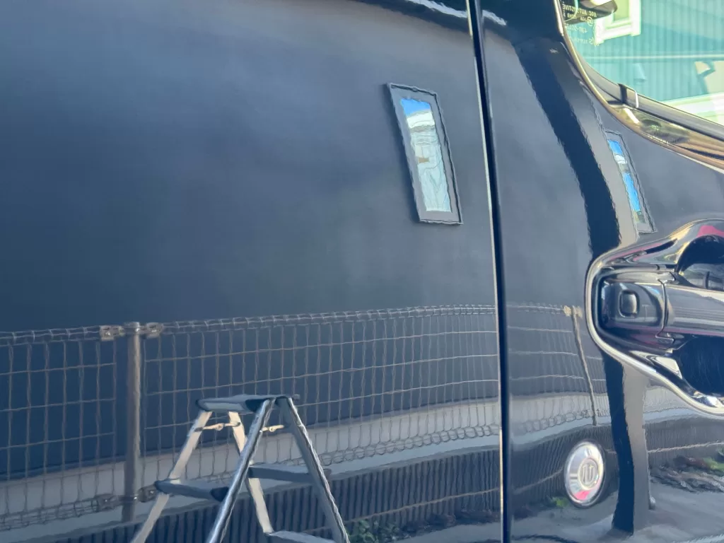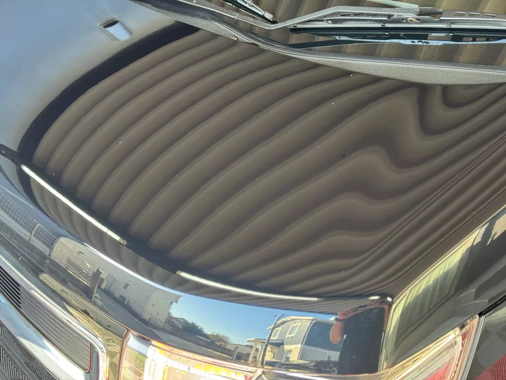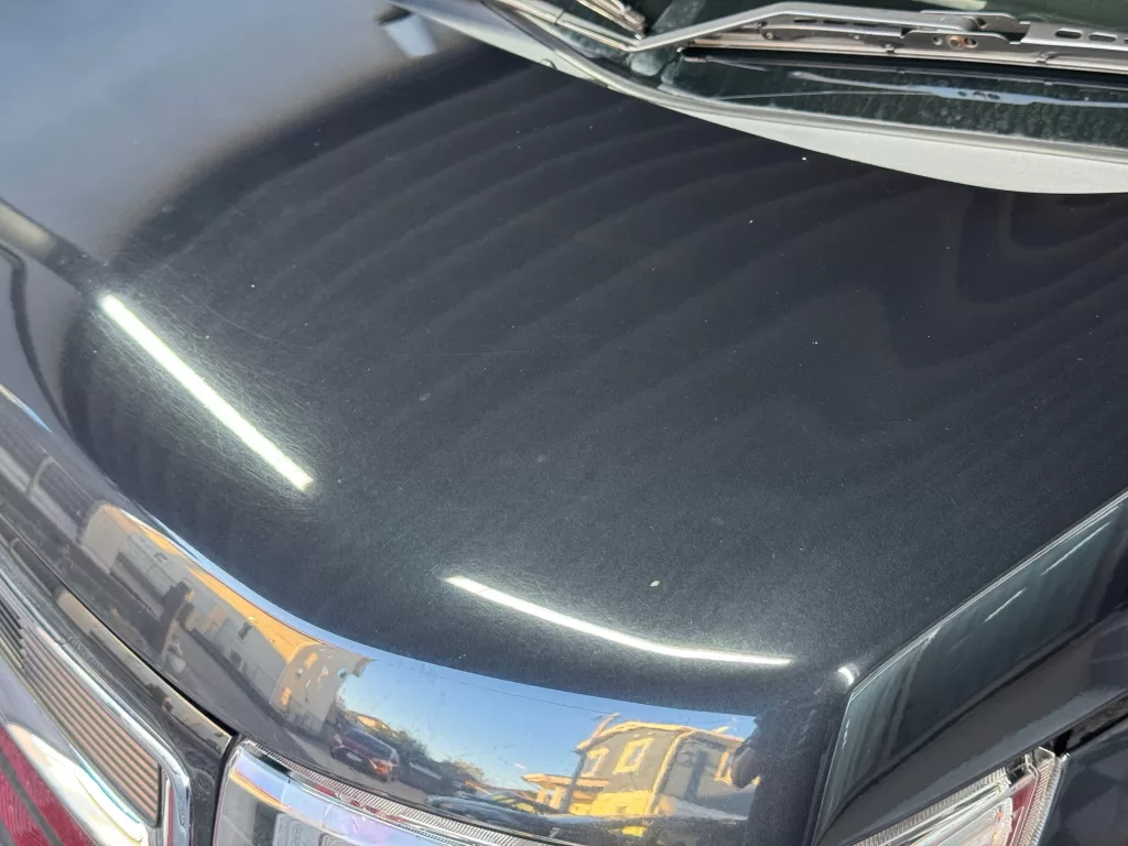 施工後のお写真をご覧いただければ分かるように、この「仕上げ寄り一工程研磨コース」では、深い傷は残るものの、いわゆる洗車傷(グルグル傷)を除去することが可能です。